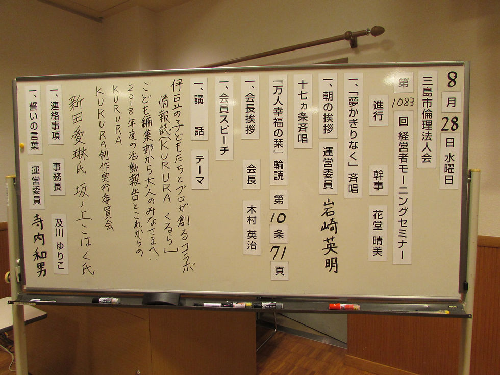 先日お伝えしていた「三島市倫理法人会モーニングセミナー」での、こども編集部編集長・副編集長の講演。8月28日(水)朝6時から!豪雨の中、スタッフ共々 朝3時半起床で行ってきました!
